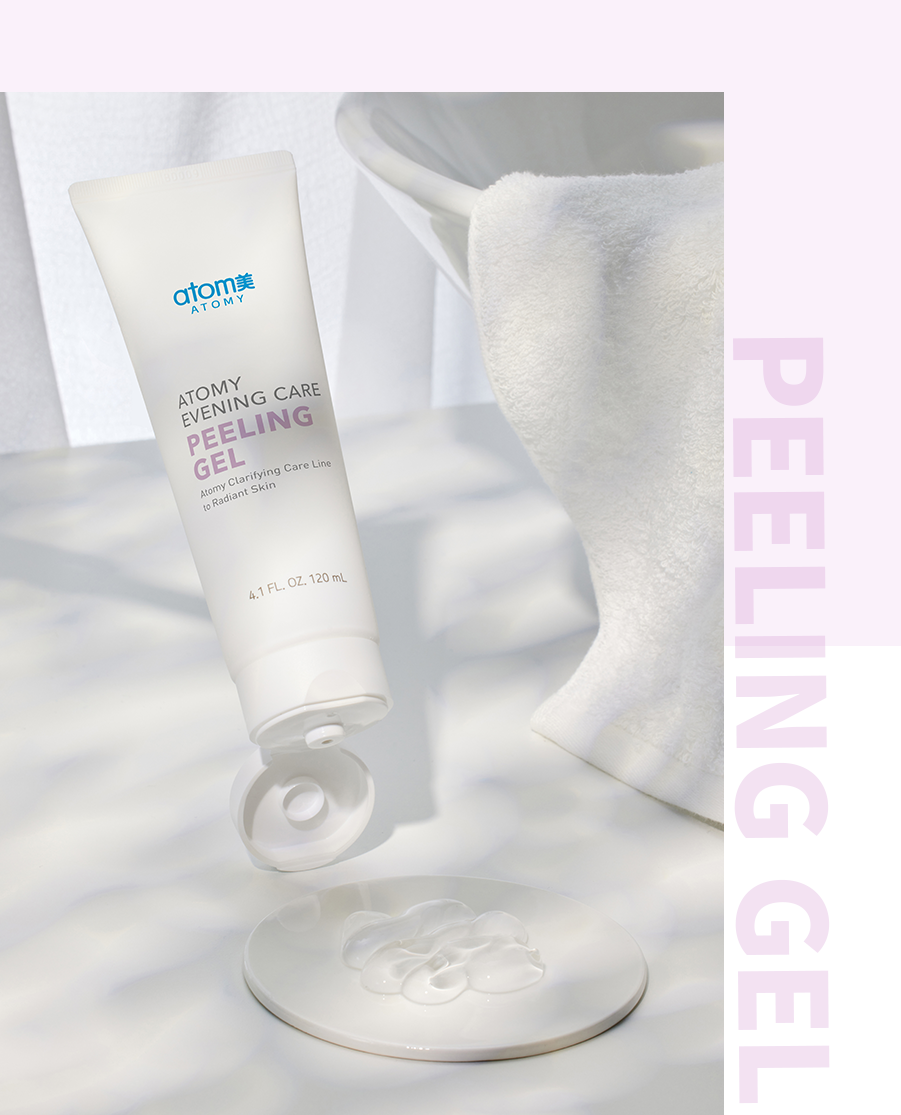 Product name Atomy Evening Care Peeling gel Volume 120mL Key Ingredients Extract of big tangerine peel, Korean elm tree root, etc. Ingredients AQUA/WATER/EAU, BUTYLENE GLYCOL, ALCOHOL, PROPYLENE GLYCOL, CARBOMER, SODIUM HYDROXIDE, PHENOXYETHANOL, DISODIUM EDTA, CENTELLA ASIATICA EXTRACT, FICUS CARICA (FIG) FRUIT EXTRACT, PEG-40 HYDROGENATED CASTOR OIL, BETAINE, CITRUS GRANDIS (GRAPEFRUÍT) PEEL EXTRACT, DIPOTASSIUM GLYCYRRHIZATE, AMARANTHUS CAUDATUS SEED EXTRACT, ULMUS DAVIDIANA ROOT EXTRACT, SALIX NIGRA (WILLOW) BARK EXTRACT, PROTEASE, ETHYLHEXYLGLYCERIN, FRAGRANCE(PARFUM), 1,2-HEXANÉDIOL, SODIUM HYALURONATE, HYDROGENATED LECITHIN, CERAMIDE NP, CAPRYLYL GLYCOL, TROPOLONE Directions After cleansing, remove any excess moisture and apply an appropriate amount to the palm of your hand. Spread it evenly over your entire face. After 1-3 minutes, massage to exfoliate dead skin cells, then rinse off with lukewarm water. This product adheres to the principles of using