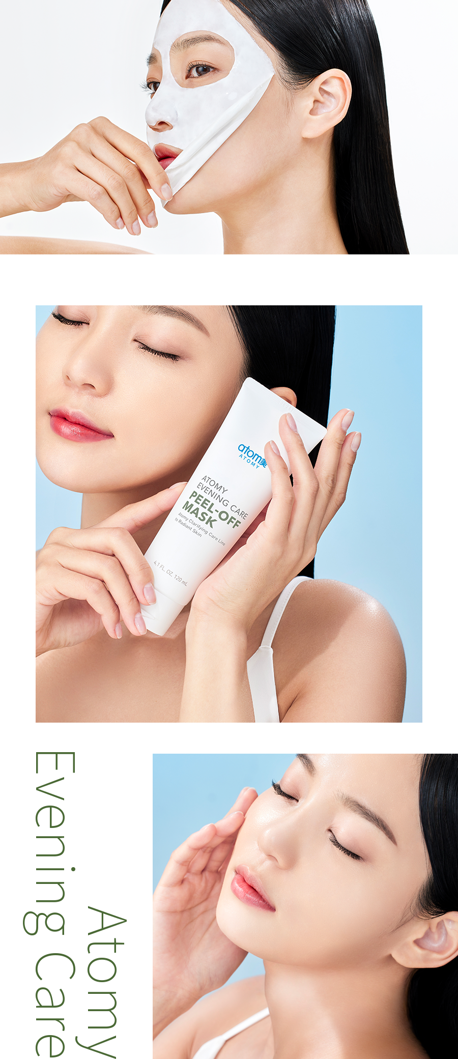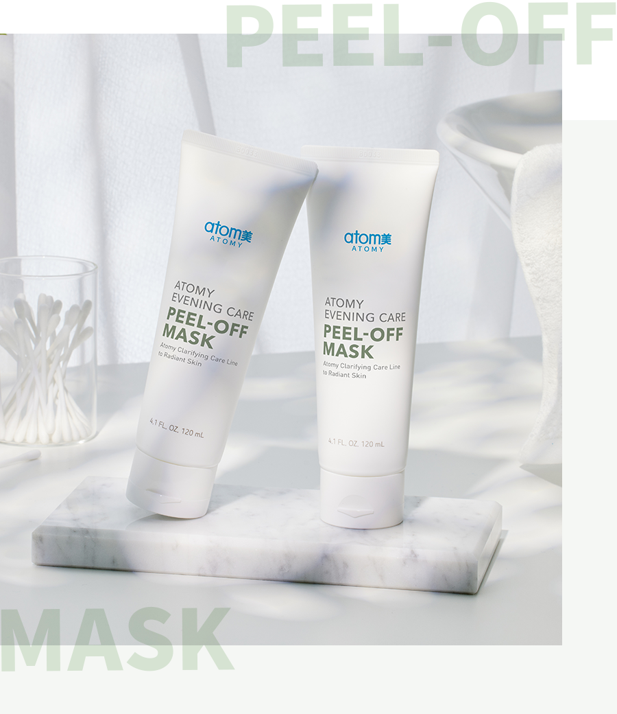 Product name Atomy Evening Care Peel-off mask Volume 120mL Key Ingredients Centella asiatica extract, amethyst powder, jade powder Ingredients AQUA/WATER/EAU, POLYVINYL ALCOHOL, ALCOHOL, BUTYLENE GLYCOL, GLYCERIN, PEG-32, TITANIUM DIOXIDE, CENTELLA ASIATICA EXTRACT, FICUS CARICA (FIG) FRUIT EXTRACT, PORTULACA OLERACEA EXTRACT, PUERARIA THUNBERGIANA ROOT EXTRACT, GLYCYRRHIZA GLABRA (LICORICE) ROOT EXTRACT, PAEONIA LACTIFLORA ROOT EXTRACT, CNIDIUM OFFICINALE ROOT EXTRACT, ULMUS DAVIDIANA ROOT EXTRACT, AMARANTHUS CAUDATUS SEED EXTRACT, SOLUBLE COLLAGEN ALOE BARBADENSIS LEAF JUICE, HYDROGENATED LECITHIN, SODIUM HYALURONATE, XANTHAN GUM, ISOCETETH-20, DIPOTASSIUM GLYCYRRHIZATE, ALLANTOIN, ETHYLHEXYLGLYCERIN, TOCOPHERYL ACETATE, BETAINE, 1,2-HEXANEDIOL, CERAMIDE NP, NEPHRITE POWDER, AMETHYST POWDER, CONCHIOLIN POWDER, FRAGRANCE(PARFUM), PHENOXYETHANOL Directions Apply a moderate amount evenly on the entire face, excluding the areas around the eyes and mouth. Once it is completely dry, peel it off from the bottom to the top. This product adheres to the principles of using