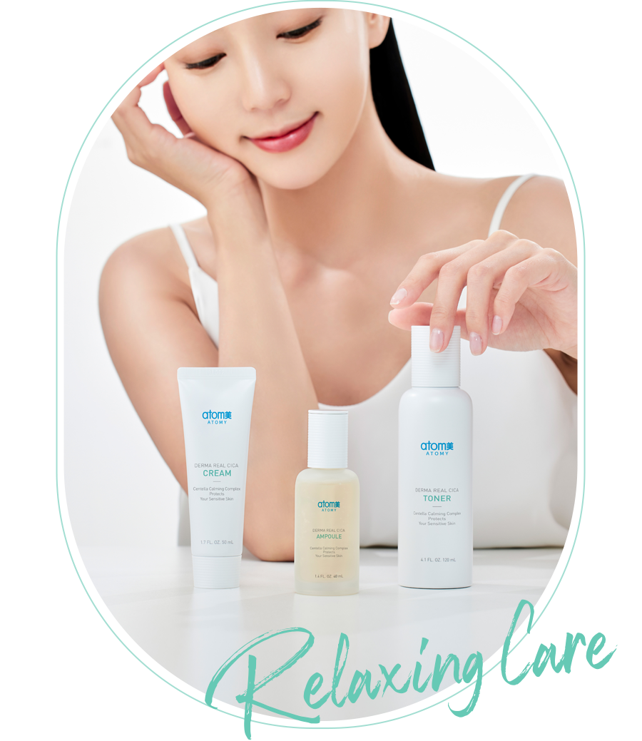 Product Name Atomy Derma Real Cica Ampoule Volume 40ml Technology and Ingredients Kolmar BNH Co., Ltd. (SBT) Manufacturer Korea Kolmar Co., Ltd. Key Ingredients Centella Calming Complex, Madecassoside, Centella Peptide, etc. Ingredients CENTELLA ASIATICA EXTRACT, GLYCERIN, HOUTTUYNIA CORDATA EXTRACT,ALTHAEA OFFICINALIS LEAF EXTRACT, ANTHEMIS NOBILIS FLOWER EXTRACT,FOENICULUM VULGARE (FENNEL) LEAF EXTRACT,LAVANDULA ANGUSTIFOLIA (LAVENDER) EXTRACT,OCIMUM BASILICUM (BASIL) EXTRACT,ROSMARIŅUS OFFICINALIS (ROSEMARY) EXTRACT,PROPANEDIOL,1,2-HEXANEDIOL,CALENDULA OFFICINALIS FLOWER EXTRACT,CHENOPODIUM QUINOA SEED EXTRACT,AQUA/WATER/EAU, BIOSACCHARIDE GUM-1,METHYLPROPANEDIOL,PORTULACA OLERACEA EXTRACT,MADECASSOSIDE,BETAINE,RAFFINOSE,CARBOMER,HYDROGENATED LECITHIN,TROMETHAMINE, ETHYLHEXYLGLYCERIN,ACMELLA OLERACEA EXTRACT,GLYCERYL ACRYLATE/ACRYLIC ACID COPOLYMER,BUTYLENE GLYCOL,DIPOTASSIUM GLYCYRRHIZATE,DISODIUM EDTA, SODIUM HYALURONATE,CENTELLA ASIATICA LEAF EXTRACT,SODIUM DNA,CITRIC ACID Storage Refer to detailed description Shelf Life 24 months from the manufacturing date Directions Dispense an appropriate amount of the contents, spread it gently along the skin texture, pat lightly to absorb. ATOMY Derma Real Cica Cream
